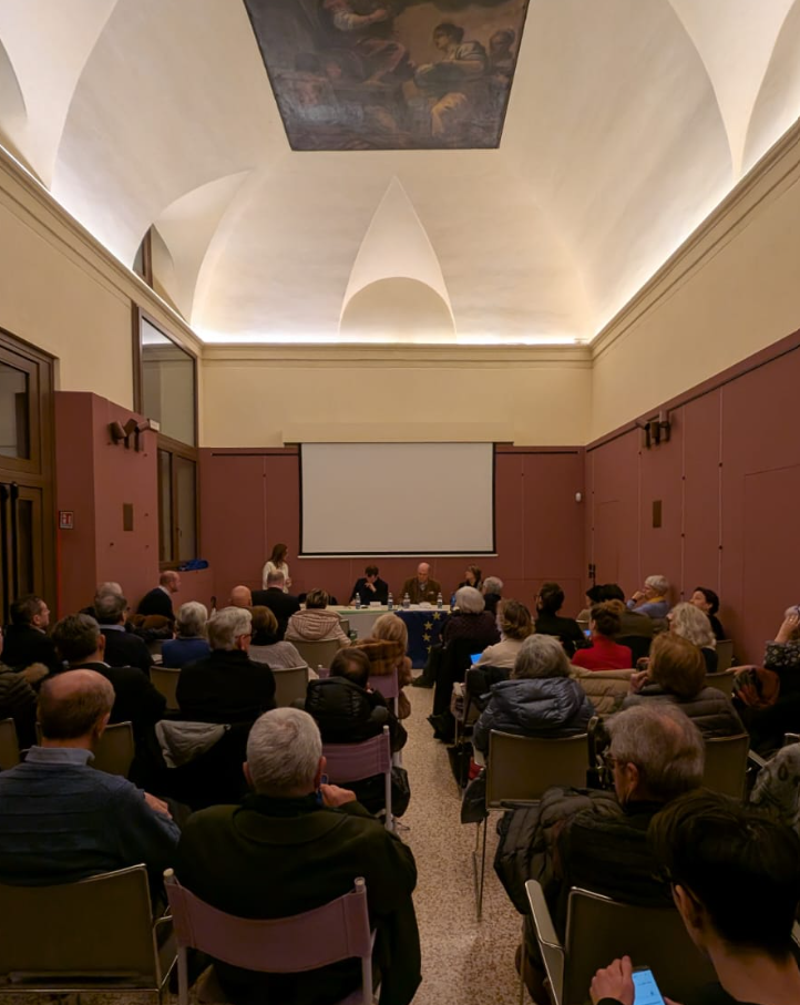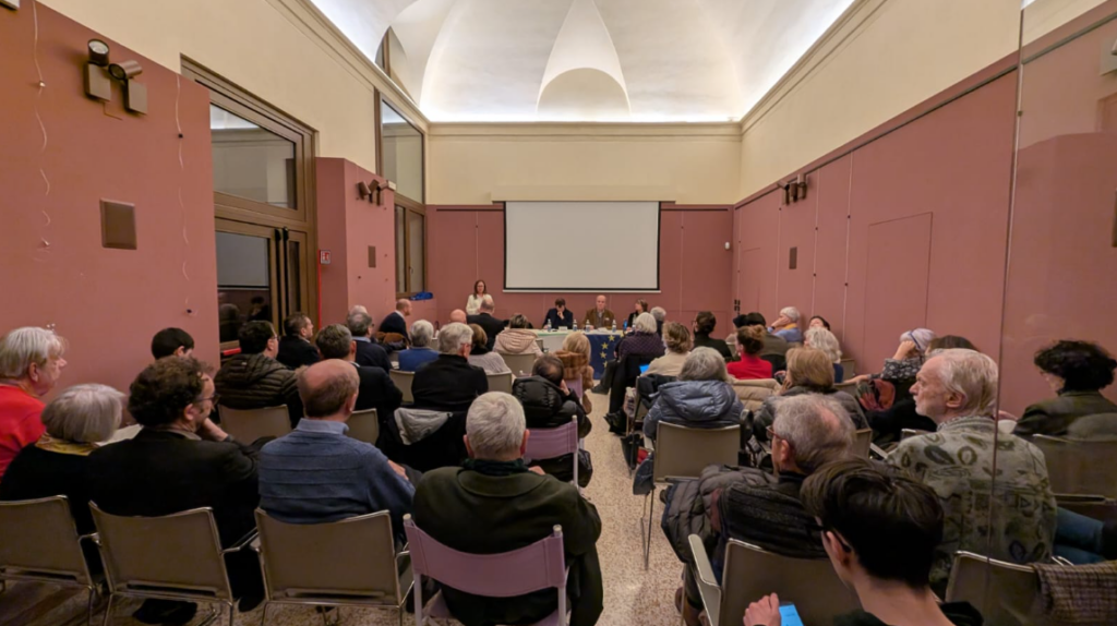 Poi è il turno di Luisa Trumellini segretario nazionale del MFE. “Riformare i trattati è urgente ed essenziale – è il suo esordio- visto che il crescente nazionalismo provoca molto disordine. Ciascuno va per sé e l’Europa è in mezzo a questi movimenti che non aveva previsto. L’UE oggi conta sempre sulla stabilità globale ma i settori economici e tecnologici europei stanno perdendo il passo. La sicurezza poi è nelle mani degli americani ed è una scelta fatta dagli europei. Il vero problema, è che al di fuori della regolamentazione del mercato tutto è fatto dai singoli stati membri e, nonostante la moneta unica, la politica europea unitaria ancora non esiste. Non sono problemi nati ieri ma si è sempre cercato di navigare lo stesso anche se costantemente con maggiore difficoltà. Mario Draghi e l’ex presidente finlandese Sauli Niinistö, hanno fatto una fotografia pessima della situazione. L’Europa non è solo in crisi, è in un vero declino e se non entriamo dentro a queste cause (ovvero la frammentazione) non ne usciamo. Sulla sicurezza vale lo stesso ragionamento. Manca una difesa comune. Se uno stato membro venisse attaccato sapremmo reagire? Se ci fosse una crisi profonda dovuta ad una guerra ibrida come già sta accadendo ora con la Russia che ci attacca ogni giorno, riusciremmo a reagire? Siamo 27 sovranità nazionali che non riescono a fare sistema e non si parlano e bisogna cambiare questo fatto!”
