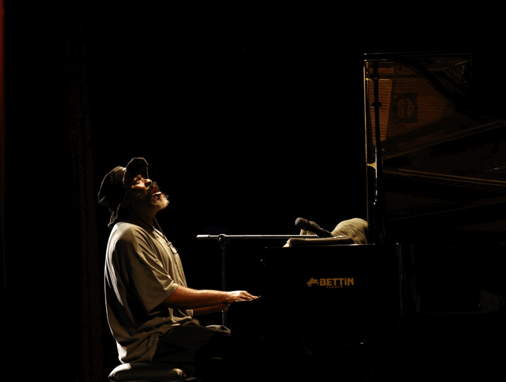 Oggi era la sua giornata e, in anteprima nazionale, la giornata della Lydian New Call che prende il testimone dalla Lydian Sound Orchestra dopo 35 anni di onoratissima attività e premi e riconoscimenti. Il progetto della “nuova” orchestra di Brazzale punta sui giovani e sul solito spettro sonoro che sposa la tradizione ma tiene d’occhio anche mondi contemporanei in una sorta di third stream, che poi è il coraggio di mischiare, di non piegarsi alle regole di genere, di lasciare che l’arte respiri libera. Ma prima di sentire questa piccola, grande orchestra, sul palco del ridotto del comunale è salito un trio clamoroso che ha commosso tutti i presenti e che probabilmente si è rivelato come la sorpresa più sensazionale finora. Il trio di Nduduzo Makhathini ha regalato un’ora di poesia, sogno, lancinante trasporto emotivo e anche “politico” e per una volta la parola ha un senso altissimo. Lui, pianista sudafricano, enorme comunicatore sui tasti e con la parola. La sua musica è un viaggio, un ponte teso tra la terra e il cielo, tra il passato ancestrale e il futuro visionario. È un guaritore, un filosofo del suono, che intreccia il jazz con le radici profonde della sua eredità zulu, come se ogni nota fosse un respiro di antenati che sussurrano dal sottosuolo. La sua musica non è solo jazz, ma un rituale, un dialogo con l’invisibile, dove il pianoforte canta, geme, e danza come un fuoco che brucia lento sotto un cielo stellato. Un suono che sa di colline rigogliose di uMgungundlovu (titolo anche del suo ultimo album) dove Makhathini è nato, impregnato di ritmi tribali e melodie che evocano il codice guerriero africano, quello che usa la musica per motivare e guarire.