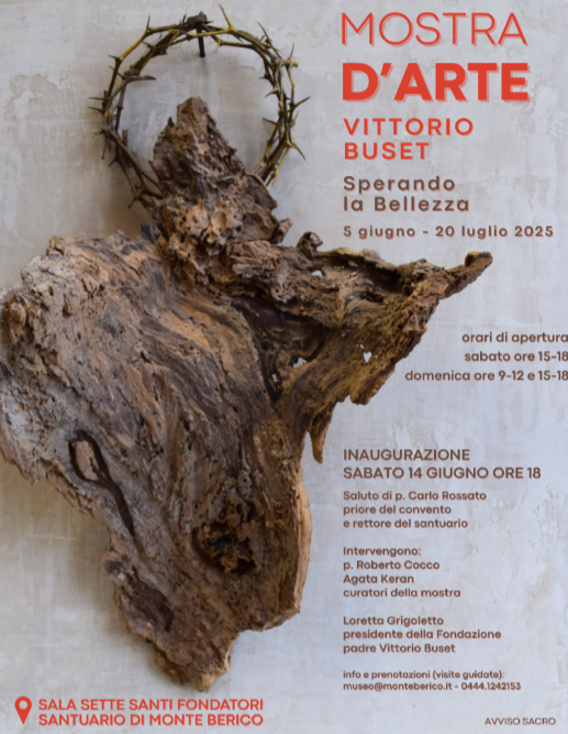 La mostra dedicata all’artista Vittorio Buset, padre giuseppino, intitolata “Sperando la Bellezza”, si terrà nella sala Sette Santi Fondatori dal 14 giugno al 20 luglio 2025, nel contesto del Giubileo della Speranza. Sarà un’occasione speciale per contemplare, in un antico ambiente conventuale, le opere di questo talentuoso autore dedito all’arte sacra, in grado di offrirsi come strumento di meditazione sulla via spirituale della bellezza e sul suo nesso intimo e profondo con la speranza. L’esposizione coinvolge una ventina di opere di carattere polimaterico, comprese le statue ispirate alla figura della Madre di Dio. Friulano di origine, nato a Pasiano (Pordenone) nel 1942, padre Buset è stato per molti anni docente di discipline artistiche a Vicenza, presso la scuola professionale dei Giuseppini del Murialdo, fino al trasferimento nel 2007 a Venezia, nella parrocchia di Madonna dell’Orto. Nella città lagunare ha ricevuto l’incarico di cappellano della Scuola Grande di San Rocco. L’inaugurazione della mostra, a cura di Agata Keran e padre Roberto Cocco, avrà luogo sabato 14 giugno alle ore 18.00, con gli interventi di p. Carlo Rossato, dei curatori e di Loretta Grigoletto, presidente della Fondazione padre Vittorio Buset. La mostra potrà essere visitata sabato (ore 15-18) e domenica (ore 9-12 e 15-18). Per info e prenotazioni di visite guidate, rivolgersi via mail al museo@monteberico.it o telefonicamente al 0444.1242153.