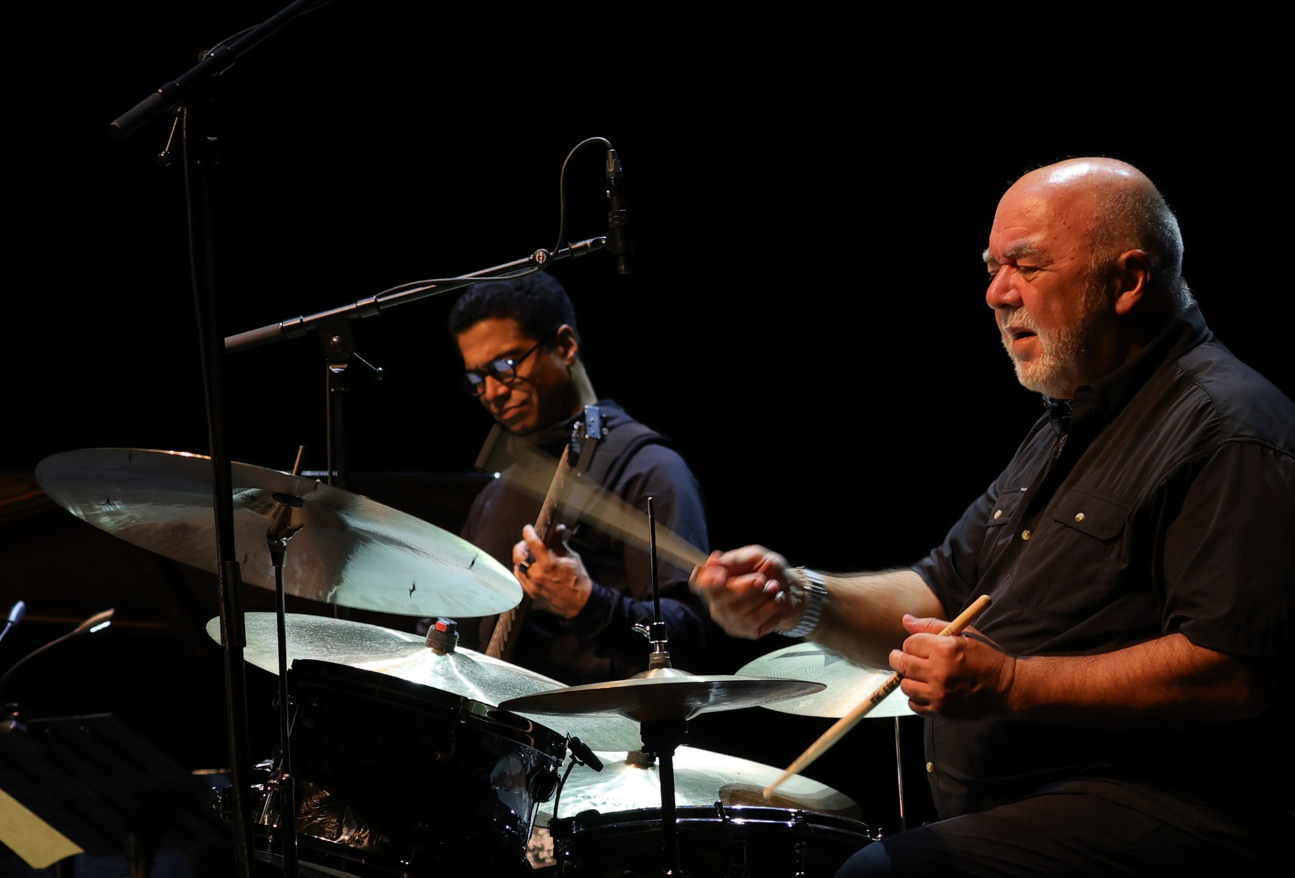 Il 2026 sarà l’anno della trentesima edizione del Vicenza Jazz Festival – New Conversation. Trent’anni sono tantissimi e cementano un’istituzione cittadina. Come antipasto, con largo anticipo, è arrivato in sala grande del Comunale Mr. Peter Erskine che, in questi giorni in cui è ancora presente nell’aria la tristezza per la morte di Jack DeJohnette, assume ancora di più il ruolo di leggenda della batteria jazz vivente, un monumento mobile. Il nome della serata, “Steps into the Weather”, spiegava già tutto. C’era da aspettarsi, quindi, soprattutto repertorio Steps Ahead e Weather Report ultima fase, forse la meno eccitante, sebbene Erskine sia dietro le pelli anche in quel capolavoro live intitolato “8:30”. Jazz con gli interni in pelle, liquido e patinato, ancora vivo, anche se, come diceva Frank Zappa, “it smells funny”. Sul palco con lui, una band di tutto rispetto, sebbene di certo i fari erano puntati in modo predominante sul duo Erskine-Mainieri, vibrafonista e fondatore degli Steps Ahead.