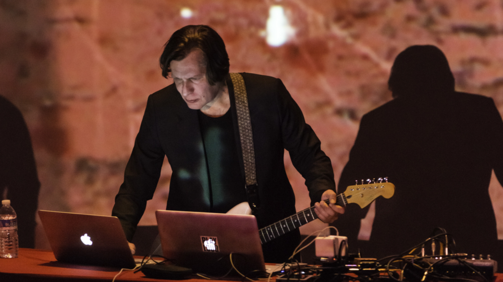 Lo spettacolo è un’esperienza immersiva concepita come un unico flusso diviso in tre grandi movimenti. Il palco diventa un campo sonoro spazializzato: altoparlanti distribuiti intorno al pubblico, luci scolpite, proiezioni minimali. Noto manovra laptop, generatori di sine-tone, processori glitch e sampler granulari; Fennesz suona chitarra elettrica pesantemente processata, creando delay infiniti e feedback che sembrano vivere di vita propria. Si parte in un silenzio quasi assoluto: micro-click, crepitii statici, droni bassissimi. È un ascolto austero, quasi rituale, che invita a sintonizzarsi sul respiro del suono stesso. Poi il dialogo si fa più esplicito: la chitarra di Fennesz introduce frammenti melodici semplici – tre note che si dilatano in code di delay – mentre Noto risponde con ritmi digitali percussivi, come battiti di un cuore elettronico. Il centro del pezzo acquista slancio ritmico, con clatter e loop che si intrecciano, ma senza mai abbandonare la matrice ambient. Nel finale tutto rallenta: echi catturati, wash armonici, un drift verso il silenzio che lascia il pubblico in uno stato di sospensione emotiva. Non ci sono citazioni dirette di temi sakamotiani (nessun “Merry Christmas, Mr. Lawrence” o “Energy Flow”), eppure l’ethos è identico: la fusione tra strumento umano (la chitarra di Fennesz, calda e imperfetta) e astrazione elettronica (la precisione glaciale di Noto). Il risultato è un suono che diventa “materia viva”, come ha scritto una recensione: conversazionale, tecnicamente raffinato, emotivamente risonante. La musica comunica continuità, non nostalgia. Parla di come l’arte non muoia con l’artista, ma si trasformi, si propaghi, si evolva.