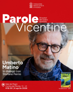 Domani, Mercoledì 8 aprile 2026, alle ore 18:30, la Sala dei Pegni di Contrà del Monte 13 ospita il primo appuntamento